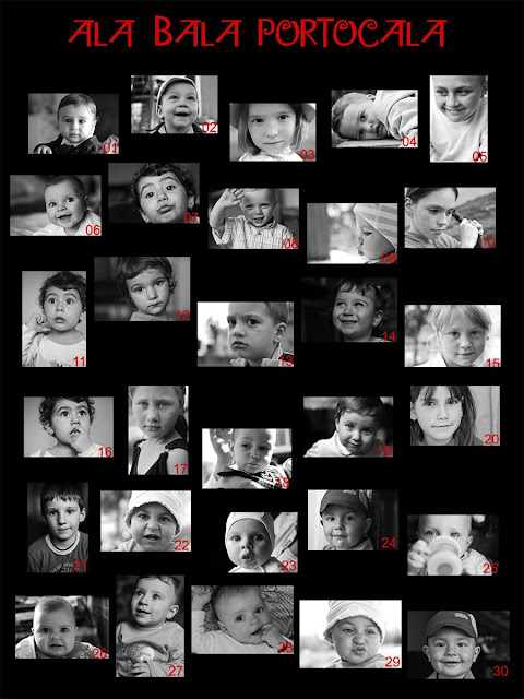 multumesc micutilor pt ca au pozat si parintilor pt acord si participare. au fost modele: petru, gabriel, irina, alexie, claudiu, ana, alexia, david, alexandra, stefan, matei, maria, ramona, alexandra, tina, andrei, nicoleta, matei, sara, anastasia si ioana. cel mai mic model avea 4 luni si cel mai mare, 10 ani. fotografiile au fost realizate in intervalul aprilie 2009 - mai 2010.